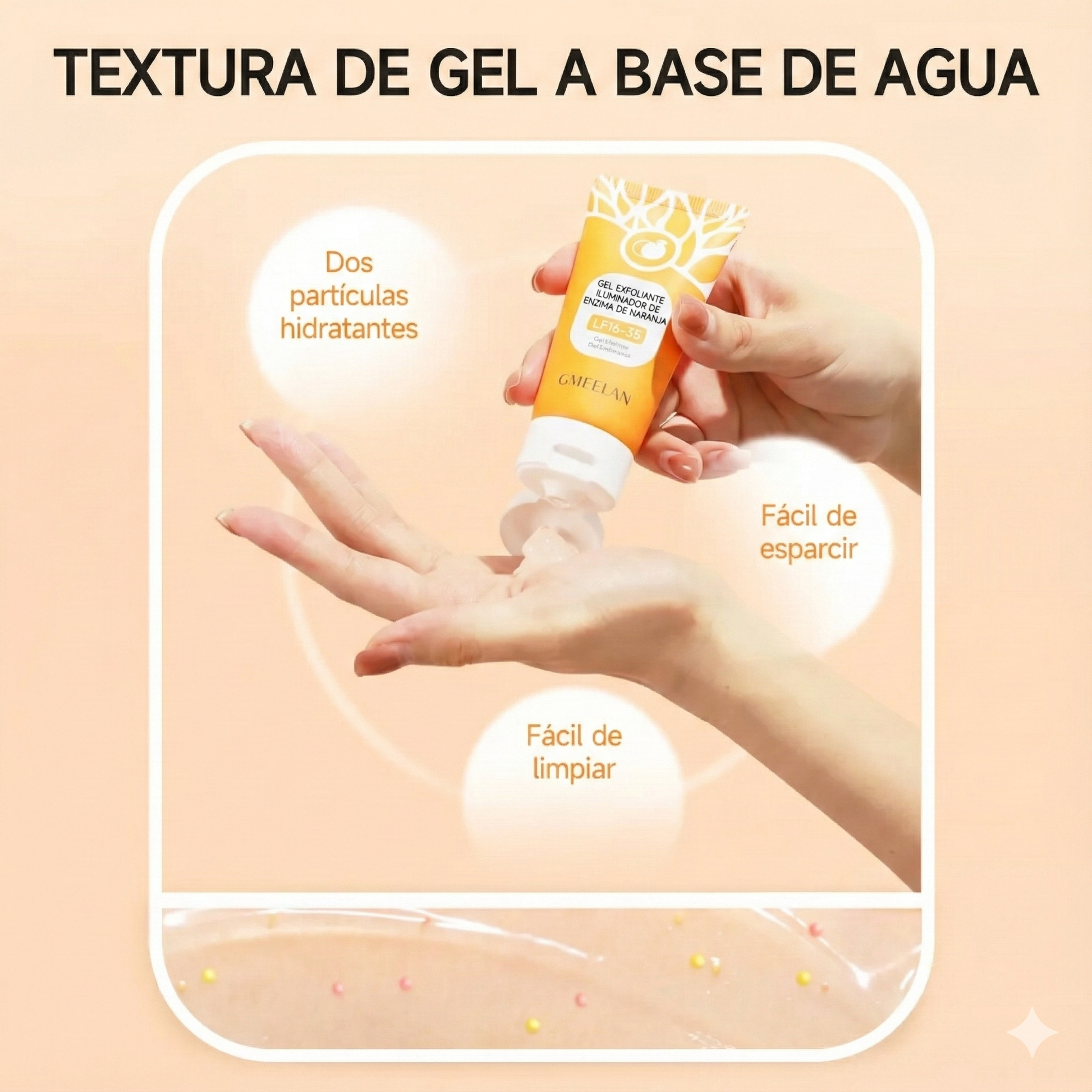 Gel exfoliante enzimático con extracto de naranja que limpia, renueva e ilumina la piel sin irritar. Ideal para rostro y cuerpo.